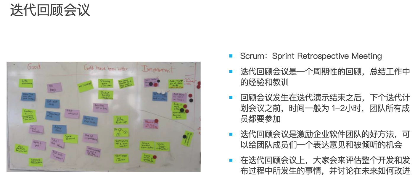 - 每隔一定时间,团队会反省如何才能更有效地工作,并相应调整自己的行为。