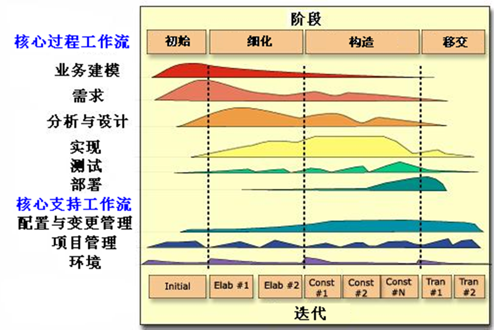 - 细化阶段:关注系统的总体框架,细化初始需求,体系结构,监控风险并细化优先级,细化业务案例以及指定项目管理计划