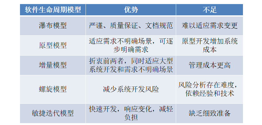 瀑布模型、快速原型模型、增量模型、喷泉模型、统一过程、基于构建的开发模型、敏捷模型