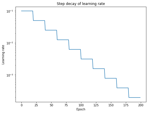 - 阶梯衰减(Step decay):在训练过程中的特定milestones(如每30个epochs)降低学习率。