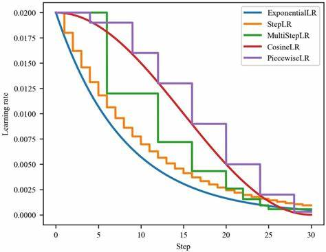- 自适应学习率调整:如Adam、AdaGrad等优化器,它们根据参数的更新历史自动调整每个参数的学习率。