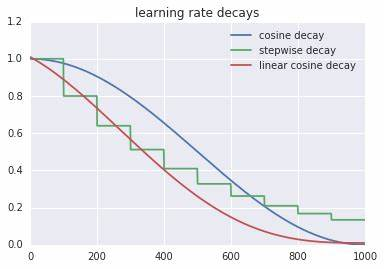 - 然后训练过程中按照一定的schedule降低学习率;或用算法根据实际训练情况,自适应地调整学习率。