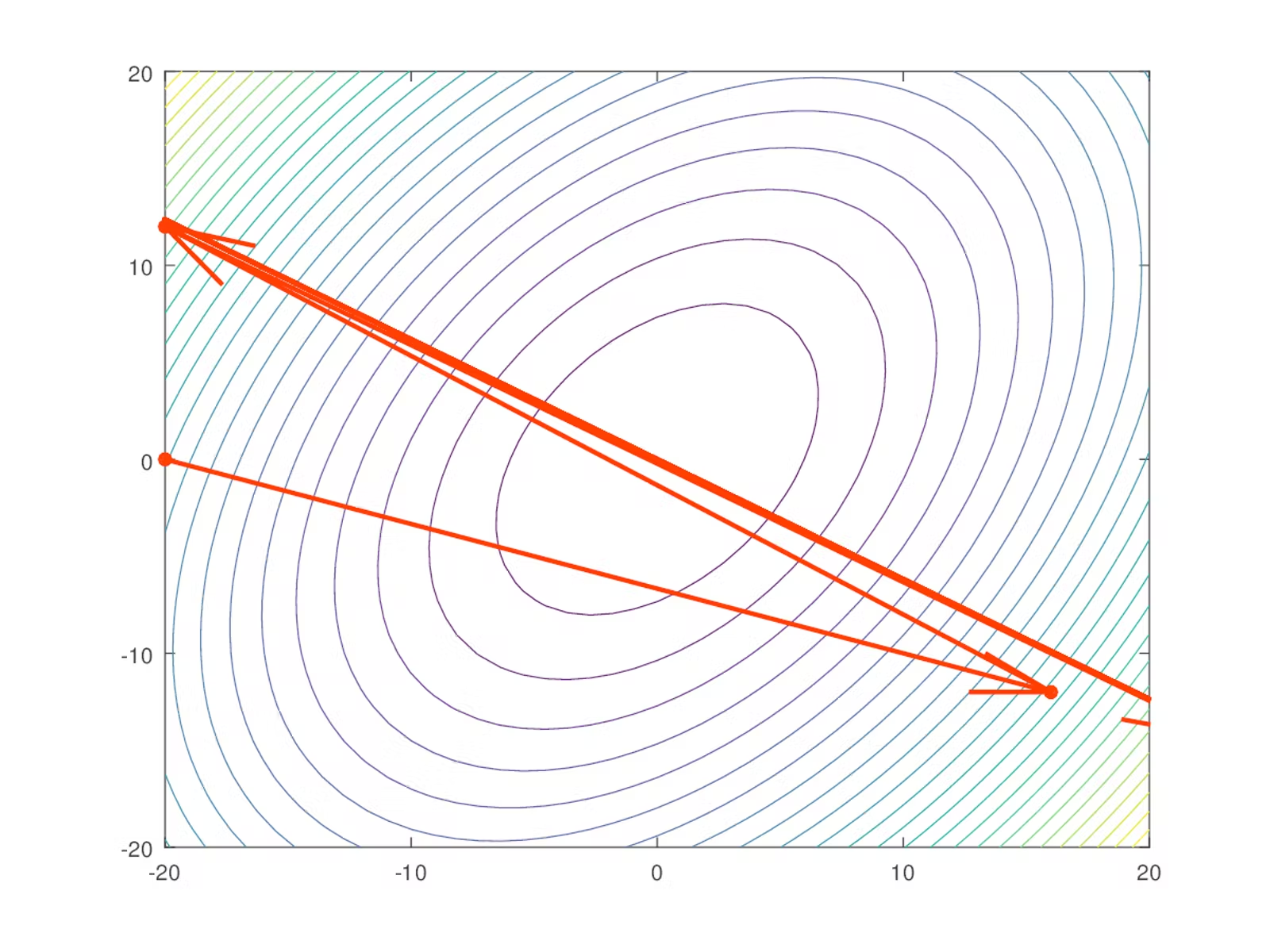 在模型训练的后期,情况正好相反。模型已经具有大致正确的梯度;它只需要一点额外的推动力来找到最后几个百分点的性能。较大的梯度不再合适,因为它会“超越”最优点。模型不会收敛到全局成本最小值,而是会在其周围反弹: