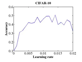 这个例子中,学习率0.006时,准确率开始平稳波动,0.006就应该用作初始学习率。